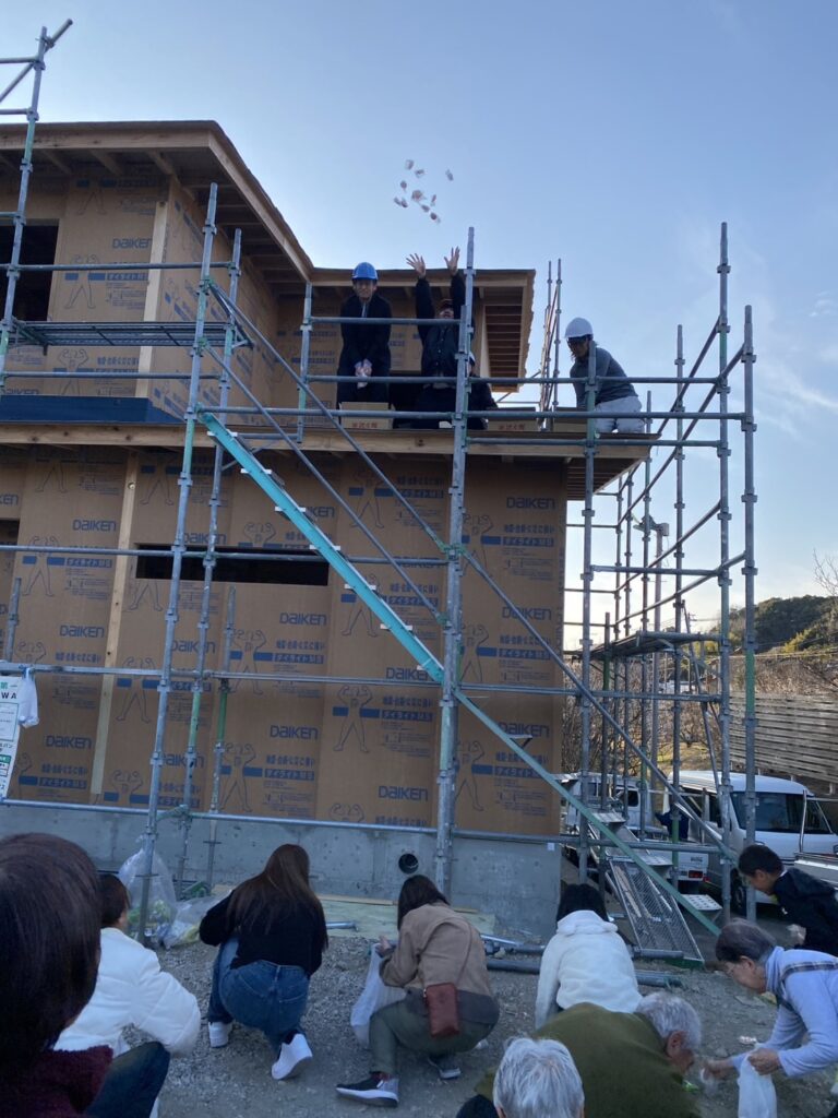 また上棟式のあとのお餅まきには、ご近所様や施主様の知人や職場の方などもお越しくださり、笑顔がいっぱいの素敵な時間となりました。