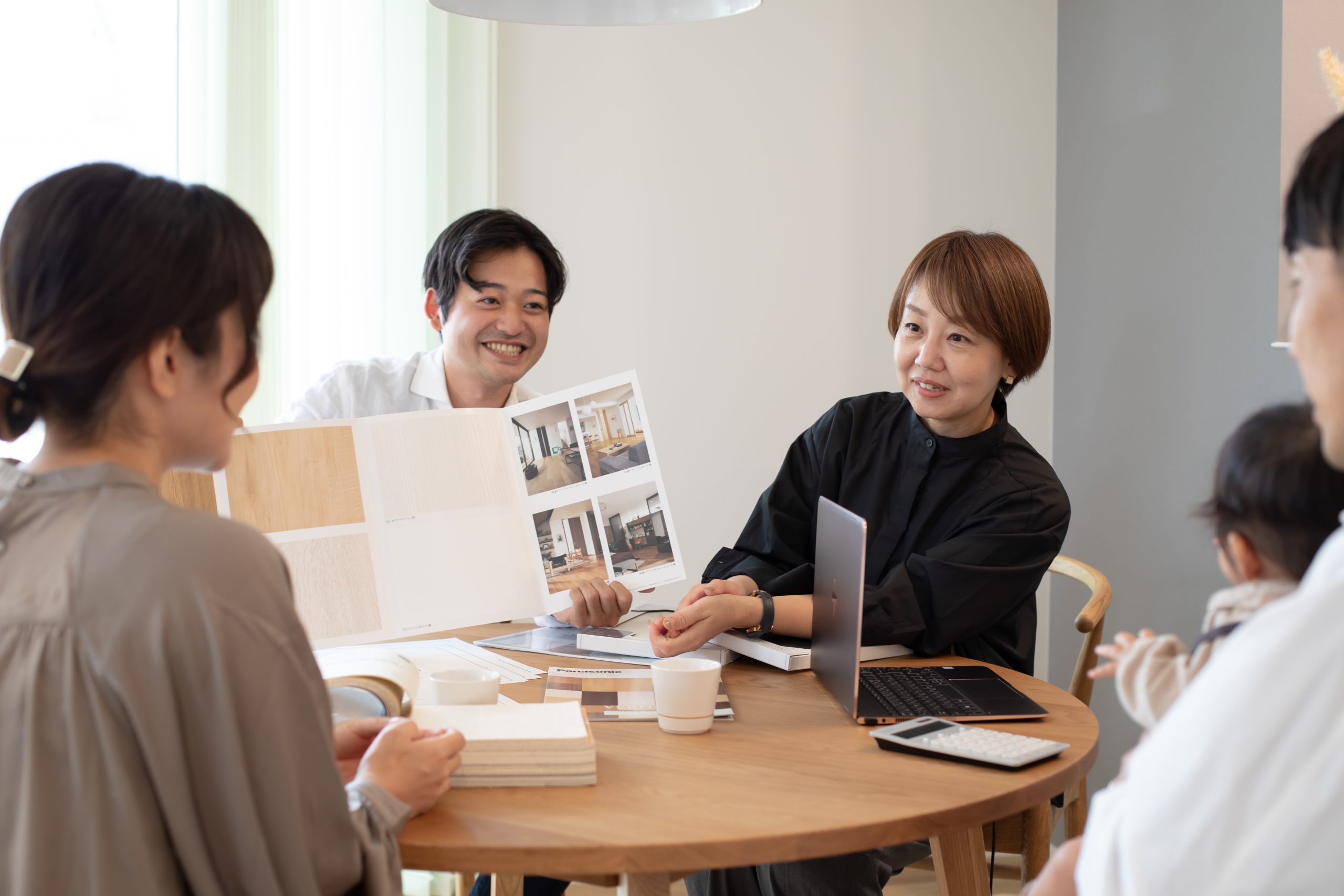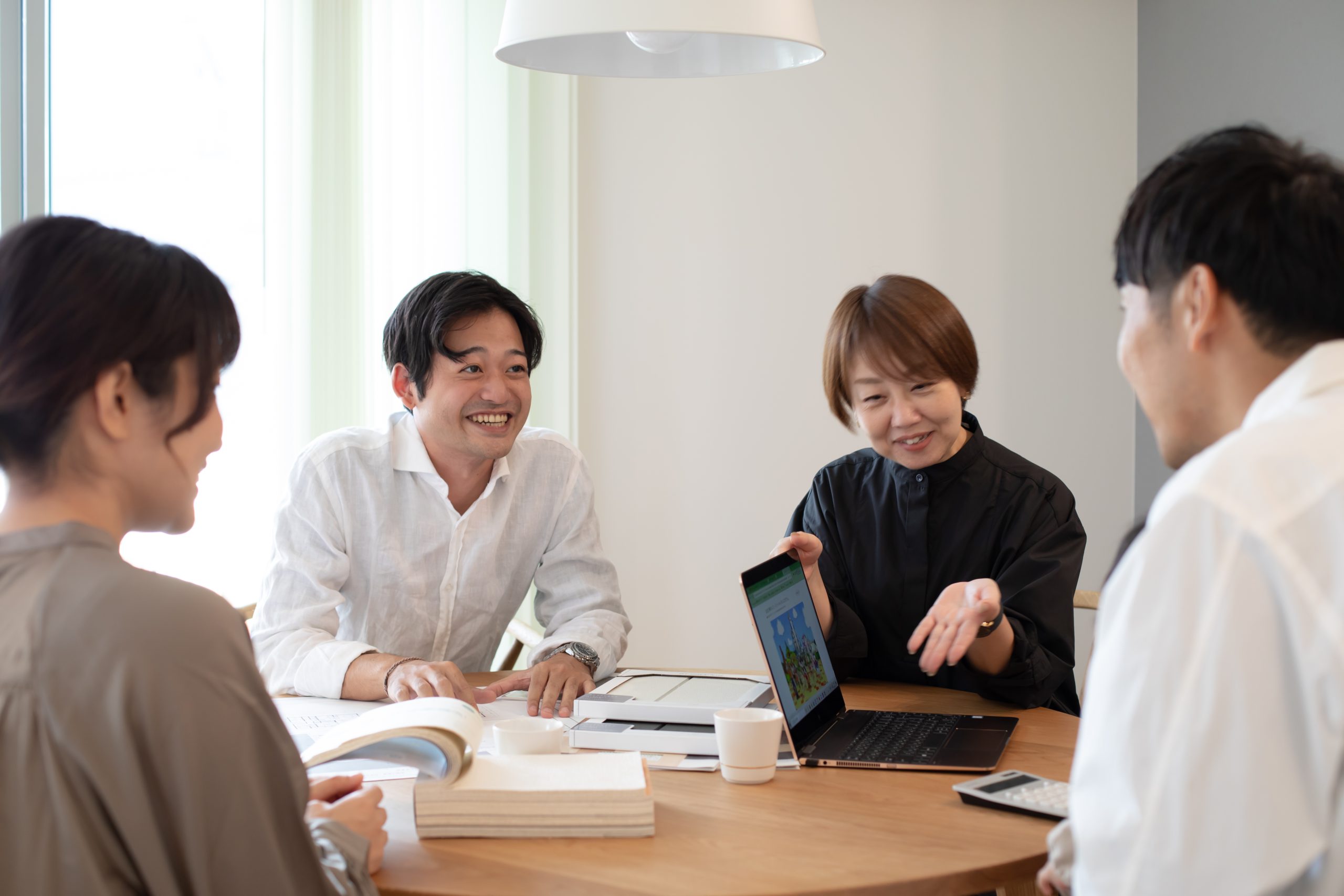 お客さまと直接お話をしながら、おうちづくりの要望やこだわりを聞き取りプランニング・デザイン + 図面作成を担当します。窓口担当と一緒に打ち合わせをして、お客さまの希望を設計図面に表現します。