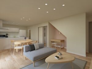 リビングの気配を感じながら集中できるカウンターは、ご主人のリモートワークや奥様の家事スペース、お子様のスタディコーナーにもぴったり。