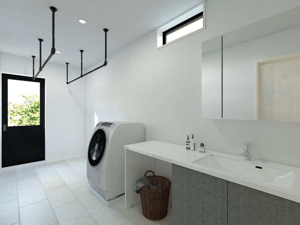 毎日繰り返される家事だからこそ、移動のムダをなくしたい。そんな想いを叶えるのが、水回りを横一列にまとめて配置したこだわりの家事動線です。