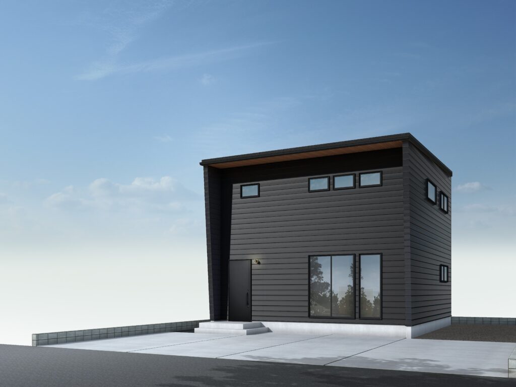 クールなガルバリウム鋼板の外壁に、あたたかみのある木目の軒天井を合わせることで、スタイリッシュさと自然の風合いが美しく調和した上質感のある佇まいに仕上がっています。