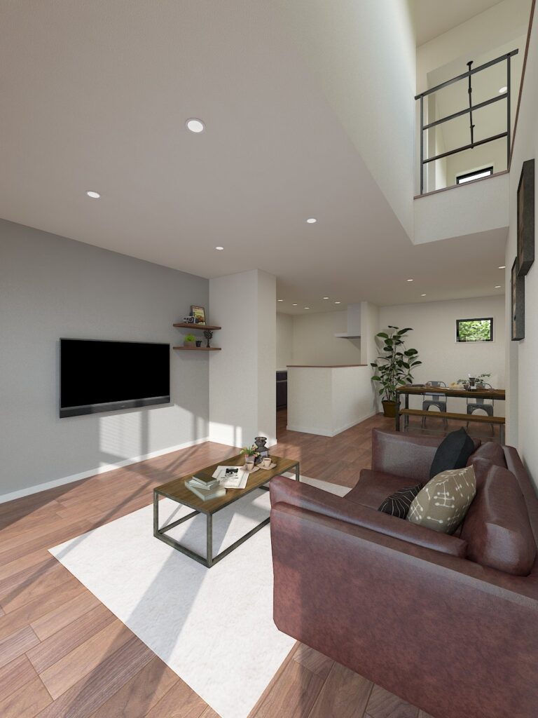 POINT 1:吹き抜けから光が降り注ぐ、開放感と洗練を極めたLDK