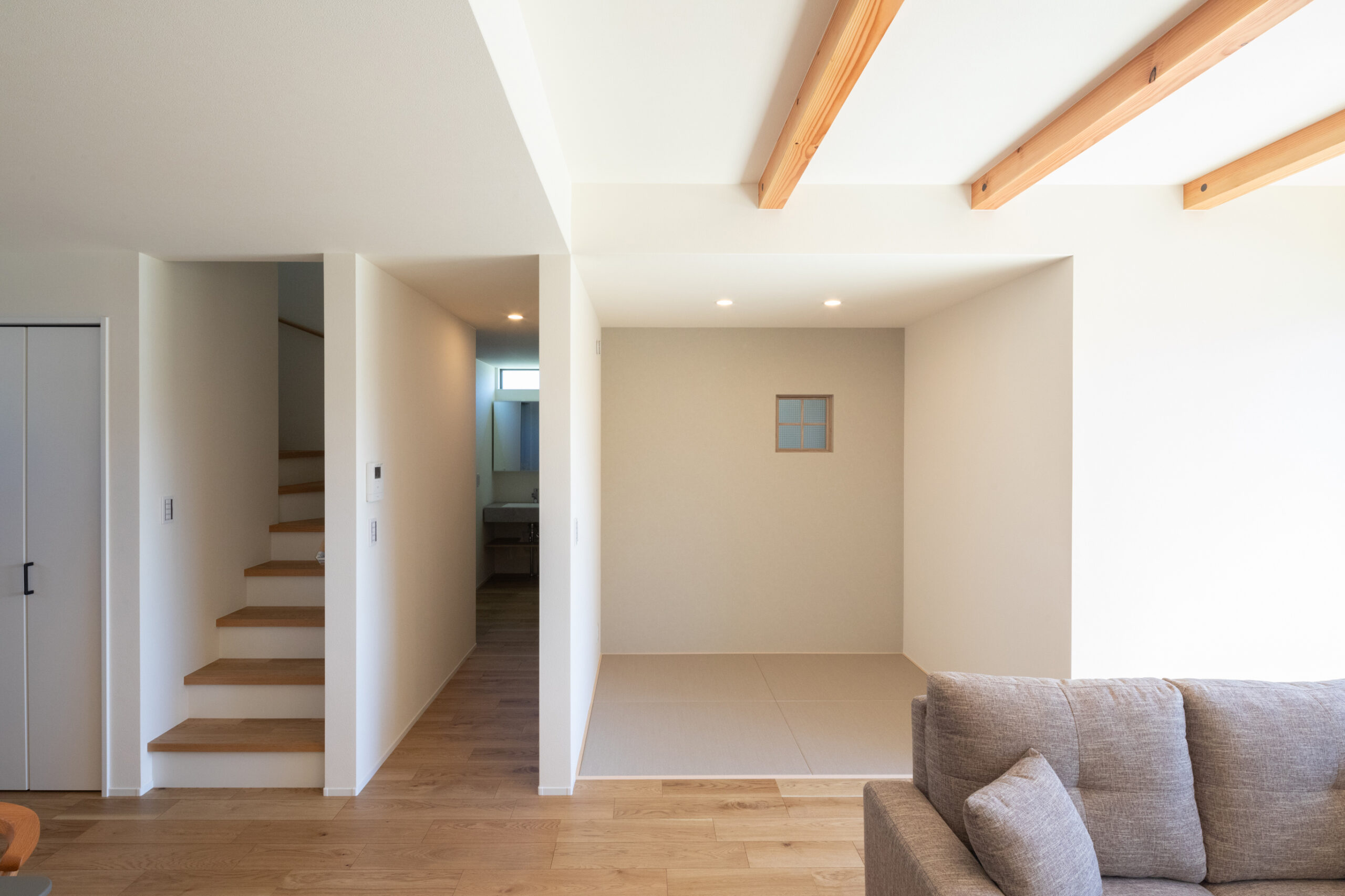 リビングの一角に設けられた畳コーナーは、家族がホッとくつろげる落ち着きのスペース。