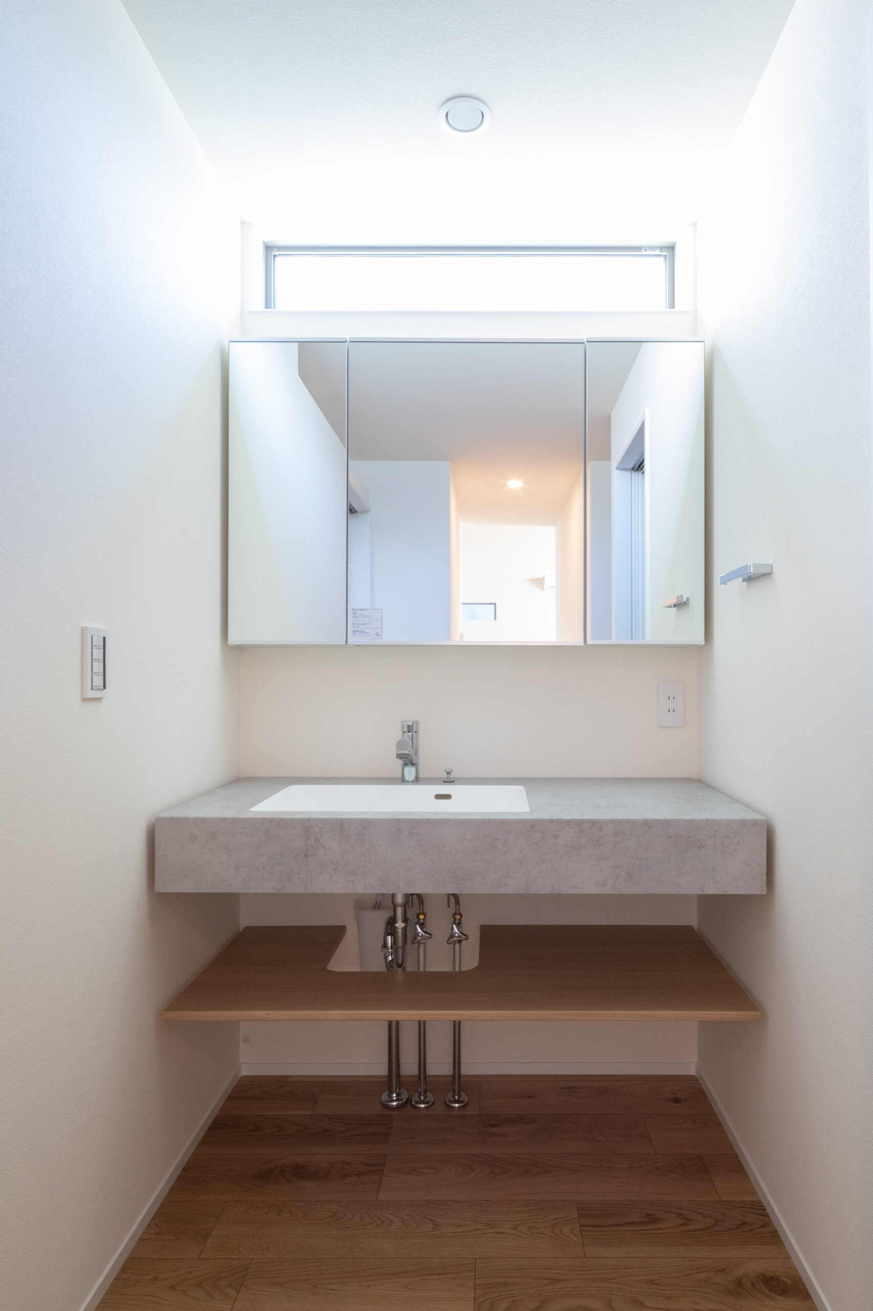 「明るさと開放感が引き立つ、おしゃれな洗面スペース」