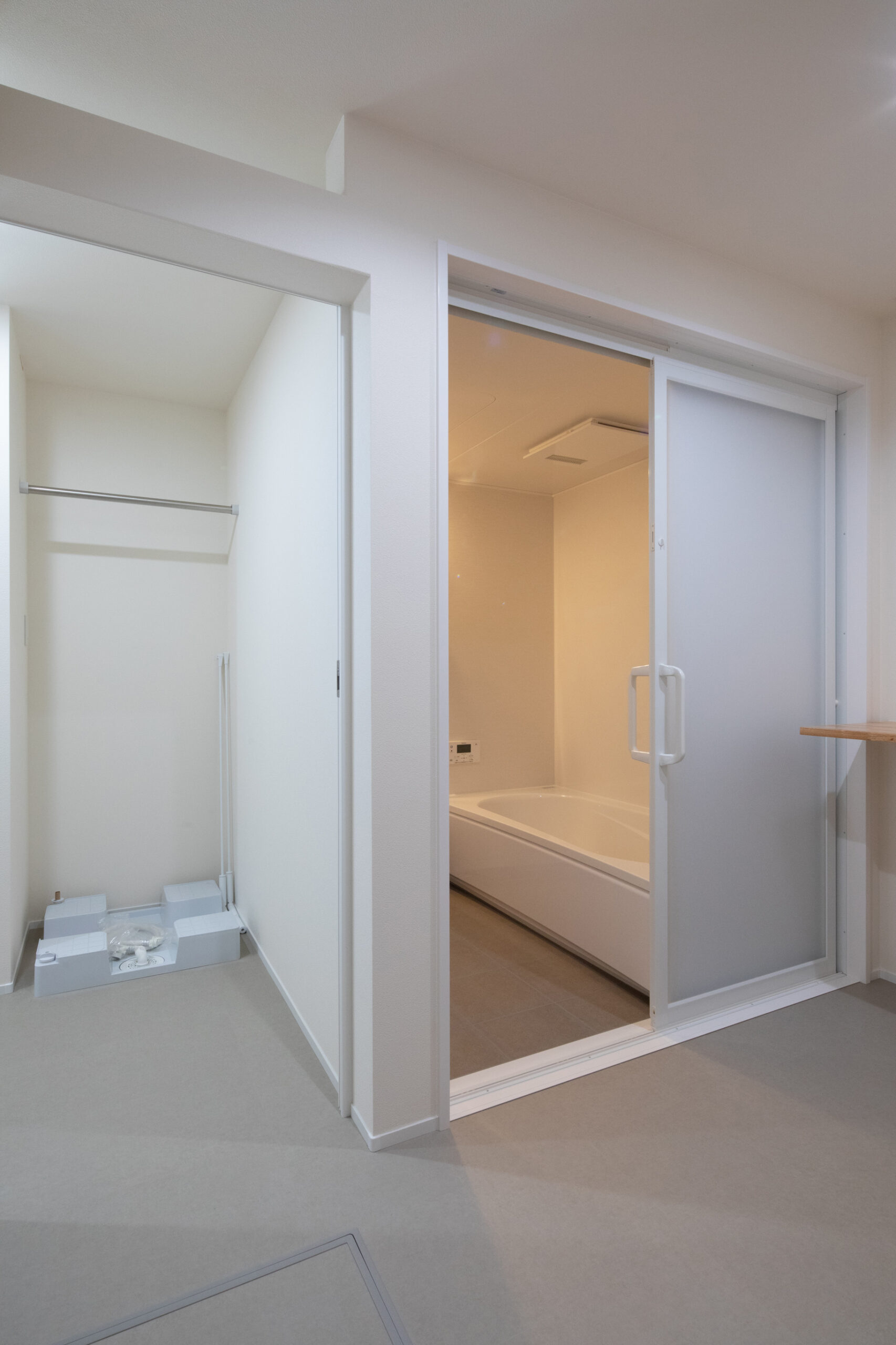 洗濯スペースと浴室が近く、家事の流れがそのままつながる使いやすいレイアウト。