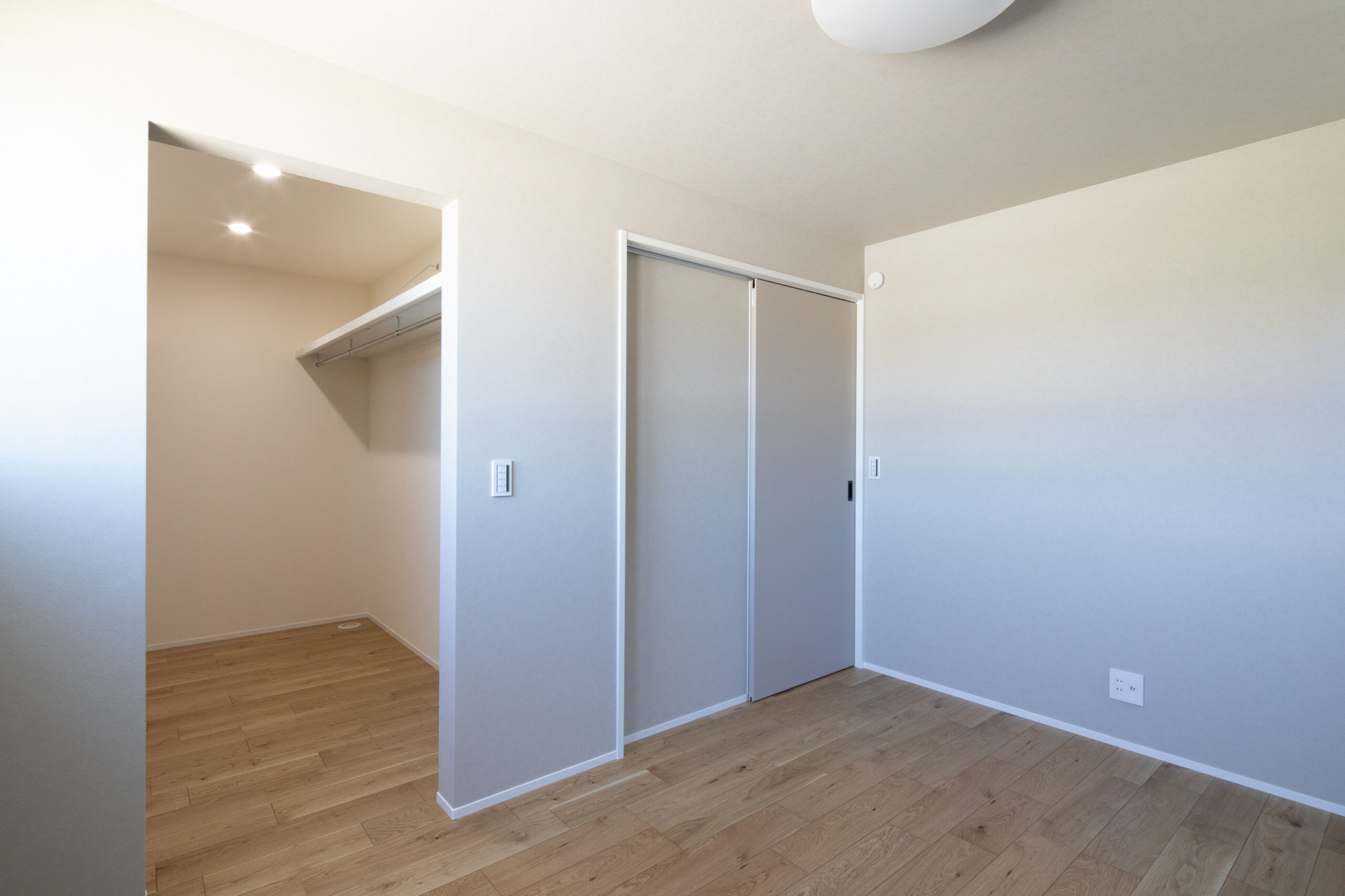 さらに奥には便利なウォークインクローゼットを備えており、収納がすっきり収まることで、空間全体をより広々と感じさせます。