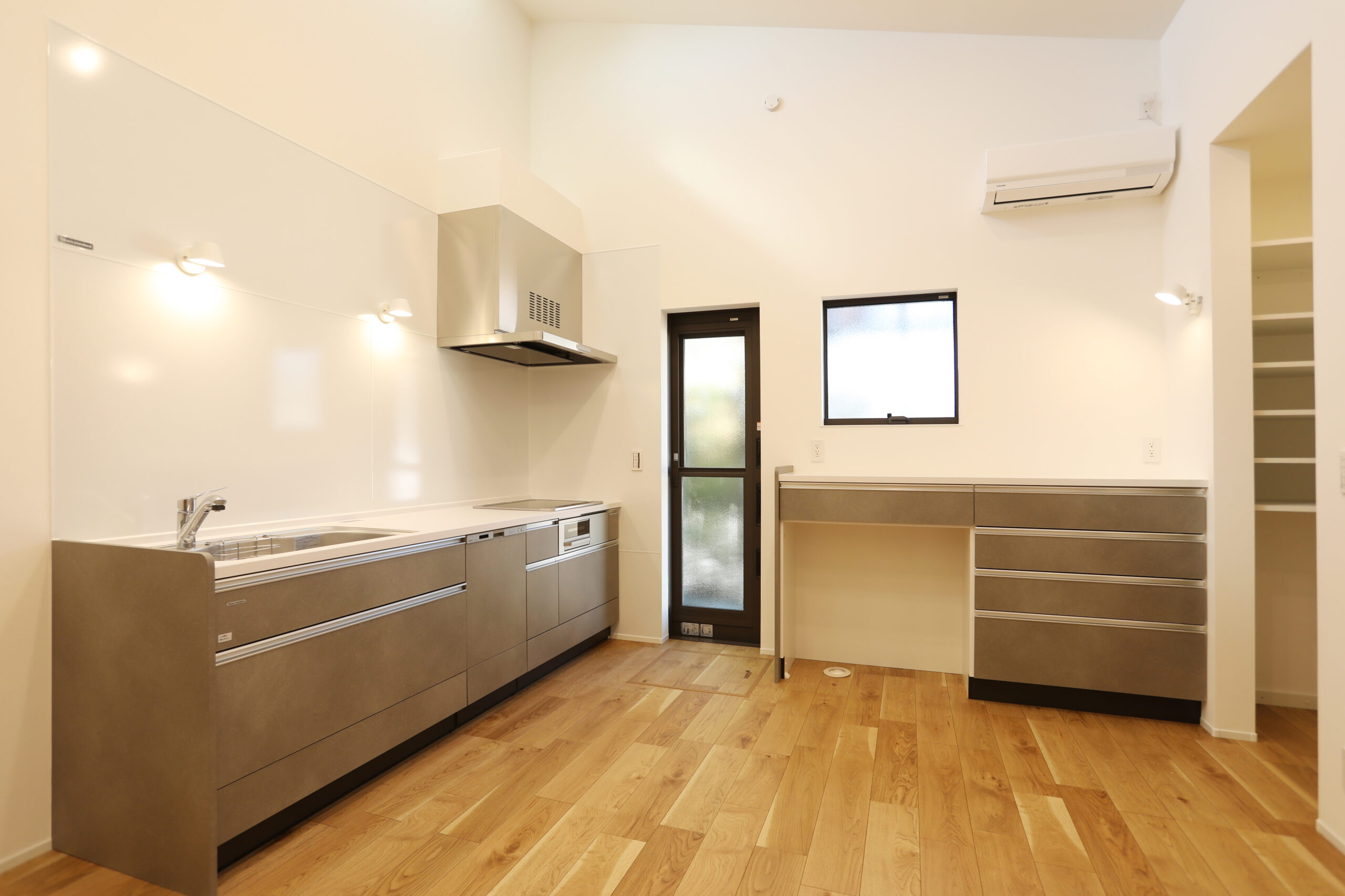背面収納も“必要な分だけ”をコンパクトにまとめており、キッチン全体がスッキリと整います。