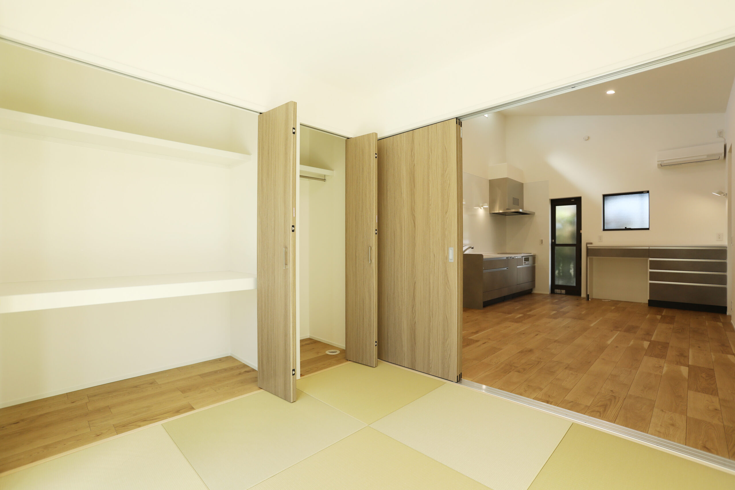 明るい木の色合いと畳のやさしい風合いが、リビングとの調和を生み、温かみのある暮らしを演出します。